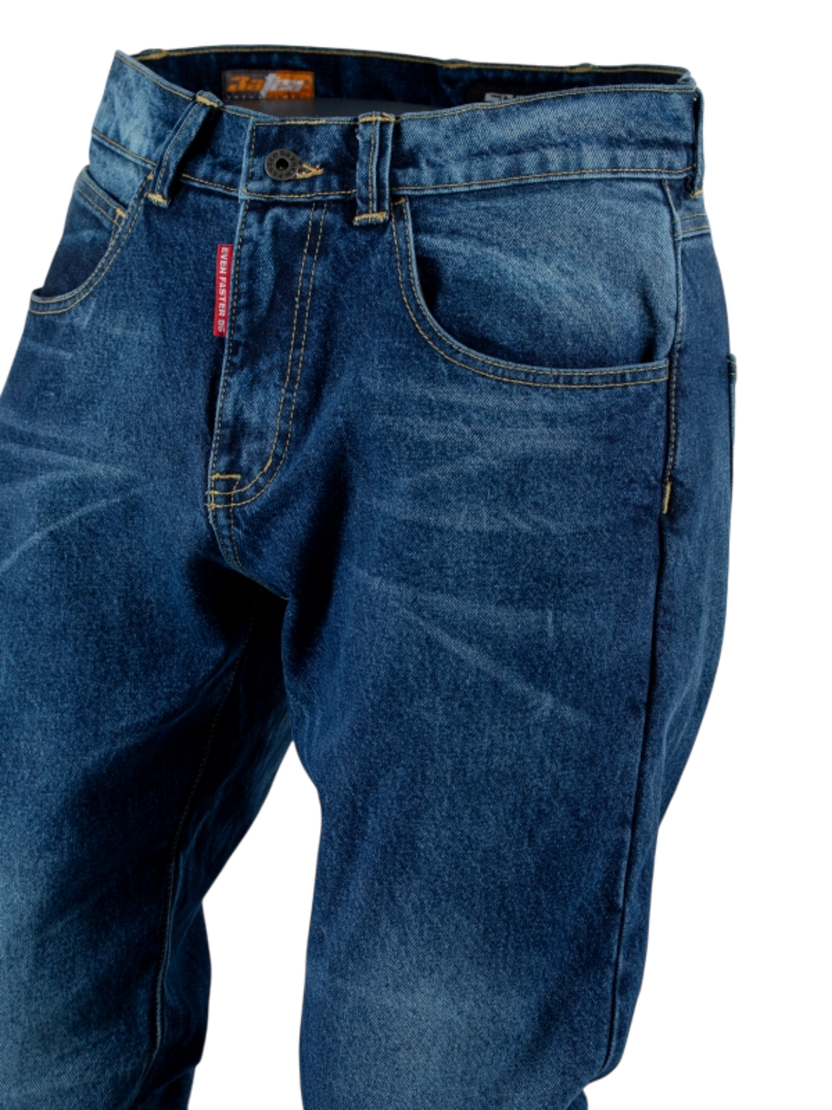 Джинсы изнутри усилены тканью 3ATEX(Anti Abrasion Action Textile). Согласно испытаниям 3аТЕХ выдерживает 290 000 циклов истирания, что в 2 раза превышает показатели известных аналогов).
