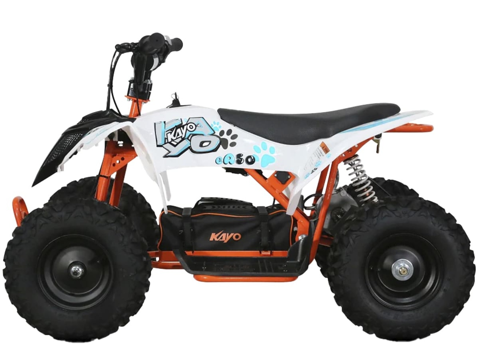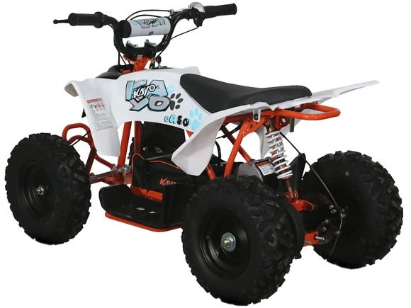 Квадроцикл KAYO EA50 – детская модель с электрическим двигателем для весёлых и безопасных заездов на природе.Оснащён электрическим бесщёточным двигателем мощностью 500 Вт. Обеспечивает плавную и бесшумную езду без выхлопных газов. Свинцово-кислотный аккумулятор 36V12AH обеспечивает запас хода в 90 минут езды. Полная зарядка аккумулятора занимает около 8 часов. Трансмиссия представлена 2-ступенчатой коробкой с реверсом.Диаметр колёс 6 дюймов. Амортизация спереди отсутстсвует. На задних колёсах установлен моноамортизатор длиной 200 мм. Спереди и сзади установлены механические дисковые тормоза.Приборная панель представлена электронным дисплеем, куда выводится информация о скорости, заряде аккумулятора и километраже.Габариты квадроцикла 1030х580х660 мм.Внимание: поставляется в разобранном виде. Предназначен для самостоятельной сборки.