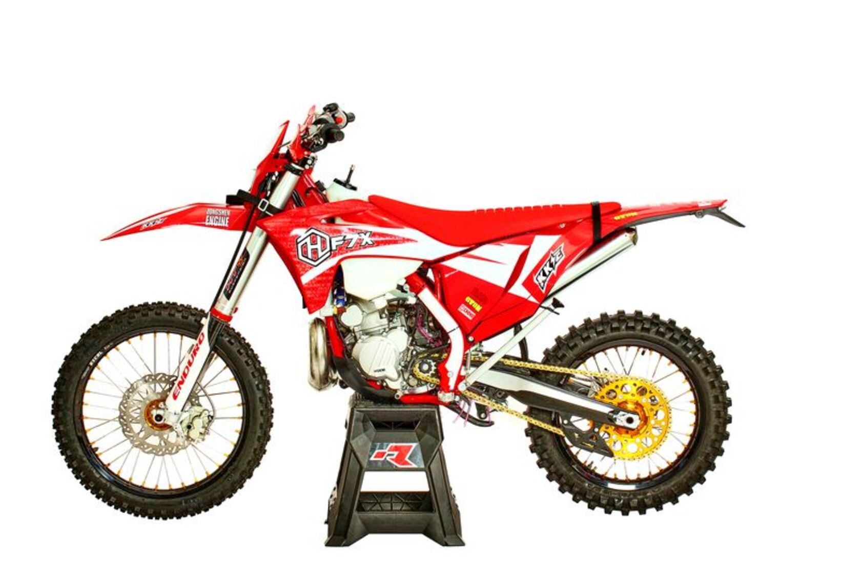 Мотоцикл оснащен 2-х тактным двигателем Koshine 320 см3Мотоцикл Hasky F7X — идеальное соотношение мощности и веса. Мотоцикл с двигателем на 44 лс, сухой вес 106кг. Двигатель копия КТМ 2017г, подвески HTW, обода excel. Идеальный байк для демонстрации качественного результата в эндуро гонках любой сложности.