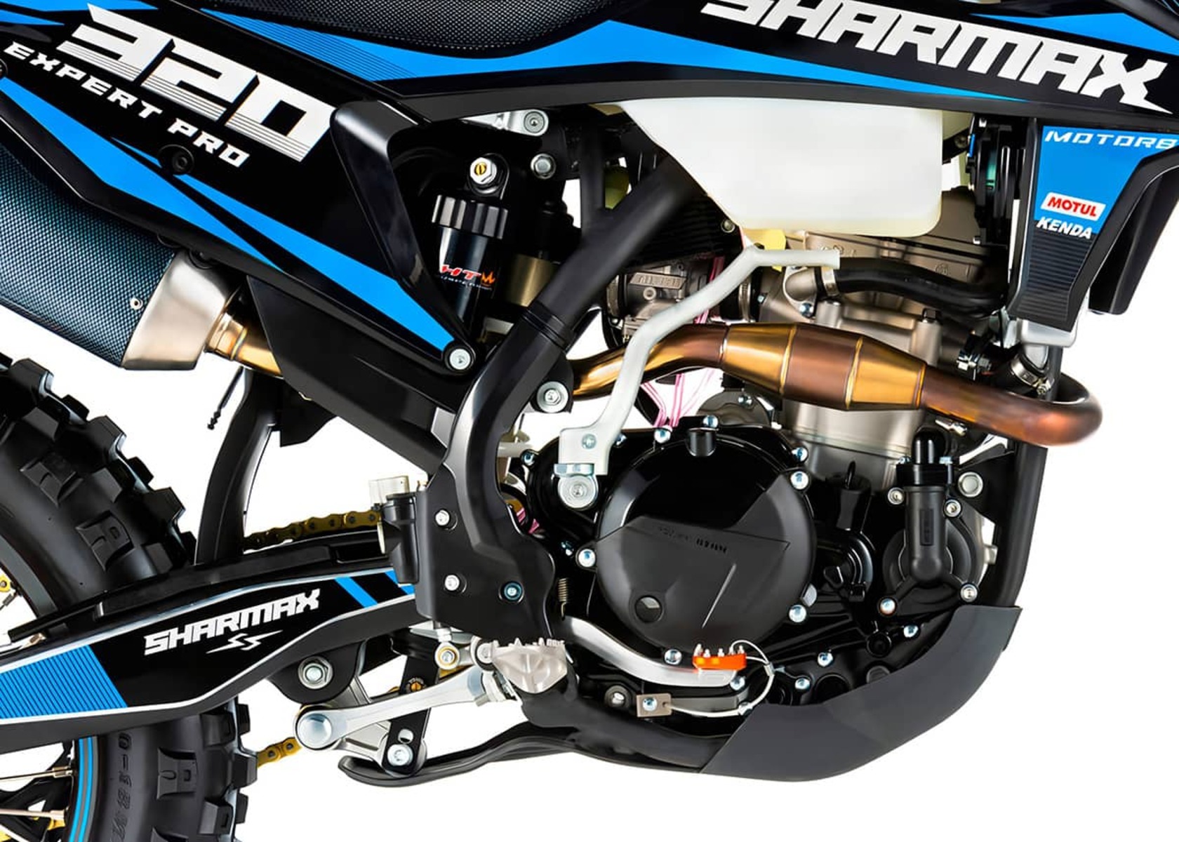 Готовы оценить новый уровень качества в мире эндуро? Sharmax Expertpro 320 — один из самых мощных байков от компании Sharmax Motors. Отзывчивый и надёжный, мотоцикл Expertpro 320 подарит ощущение превосходства даже на самом сложном маршруте. Премиальное качество и проверенные технологии легли в основу этой новинки 2024 года. Мотоцикл Sharmax Expertpro 320 был создан для тех, кто не боится добиваться новых вершин и готов выйти на новый уровень.Мотор ZS182 DOHC — один из самых мощных двигателей во всей линейке Expertpro. 300 куб. см и 37 л. с. разгонят байк до максимума с самого старта. За цепь не переживайте, даже от такого резвого мотора 520 CHOHO GOLD не порвётся.6-ступенчатая коробка передач с шестернями из высокопрочного кованого металла почти не изнашивается с течением времени. Лапка переключения — алюминиевая и складная, не пострадает даже в случае жёсткого приземления.Nibbi PWK 36 — один из лучших в своём классе. Карбюратор от легендарного американского бренда, установленный на десятках лучших эндуро-байков во всём мире. Топливная смесь высшего качества наполнит цилиндры за долю секунды и обеспечит быстрый старт даже в лютый холод.Подвеску Sharmax Expertpro 320 можно настроить под любую поверхность без потери качества. Передняя вилка (с клапаном сброса воздуха) перевёрнутого типа имеет регулировки демпфирования, сжатия и отбоя, а задняя — ещё и с регулировкой преднатяга пружины. Надёжная подвеска поможет не вилять на поворотах и стабильно проходить все сложные участки трассы.Хотите быть на шаг впереди? С быстрым и надёжным электростартером вам нужно лишь нажать кнопку, чтобы продолжить гонку. Проверенный привод и мощный двигатель стартера дадут несколько драгоценных секунд преимущества и сэкономят время в самый важный момент.Sharmax Expertpro 320 оборудован жидкостным охлаждением с водяной рубашкой и датчиками температур. Они включают дополнительные вентиляторы при достижении критических показателей. Помпа повышенной производительности не даст вам “закипеть” даже в +40C.Идеальная геометрия. Симметричная дуплексная рама из хромомолибденовой стали, позаимствованная у профессиональных гоночных байков, обеспечит оптимальную жёсткость и отзывчивость. Благодаря такой форме райдер и байк становятся одним целым, с лёгкостью преодолевая любые препятствия трека.Тормоза мотоцикла Sharmax Motors Expertpro 320 изготовлены на основе технологий компаний Nissan и Brembo. Высокая точность изготовления и качество деталей позволяют достичь аналогичной производительности, высокой точности дозирования усилия торможения, чувствительности и надёжности.Руль на мотоцикле Expertpro 320 изготовлен из прочного облегчённого алюминиевого сплава по технологии переменного сечения FATBAR. Цепкие грипсы позволяют кистям рук меньше уставать и дозировать открытие заслонки карбюратора максимально точно.Шины Kenda буквально вгрызаются в грунт, на оставляя шансов соперникам на поворотах. Агрессивный рисунок шашки, мощный состав в центре покрышки и мягкая плечевая зона обеспечивают идеальный баланс жёсткости и управляемости.