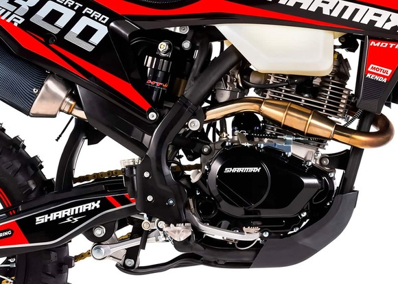 Новый уровень качества в мире эндуро. Sharmax Expertpro 300 Air — один из самых надёжных байков от компании Sharmax Motors. Отзывчивый и быстрый, мотоцикл Expertpro 300 Air подарит ощущение превосходства на любой трассе. Премиальное качество и проверенные технологии легли в основу этой новинки 2024 года. Мотоцикл Sharmax Expertpro 300 Air был создан для тех, кто не боится добиваться новых вершин.Мотор ZS175FMM от концерна Zongshen: 300 кубиков и 25 л. с. разгонят байк до максимума с первых секунд гонки. Сам мотор оснащён системой воздушного охлаждения, а значит в нём нет никаких громоздких деталей.6-ступенчатая коробка передач с шестернями из высокопрочного кованого металла почти не изнашивается с течением времени. Большинство подобных моделей оснащены 5-ступенчатой коробкой, в то время как Sharmax Expertpro 300 Air даёт вам конкурентное преимущество. Лапка переключения — алюминиевая и складная, не пострадает даже в случае жёсткого приземления.Надёжный карбюратор от компании Nibbi — один из лучших в своём классе. Карбюратор от легендарного американского бренда, установленный на десятках эндуро байков во всём мире. Топливная смесь высшего качества наполнит цилиндры за долю секунды и обеспечит лёгкий старт даже в сильные морозы.Подвеску фирмы HTW можно настроить под любой стиль езды и вес райдера. Передняя вилка имеет регулировки демпфирования, сжатия и отбоя. Задний амортизатор имеет регулировки демпфирования, быстрого сжатия, медленного сжатия, отбоя, а также регулировку преднатяга пружиныХотите быть на шаг впереди? С быстрым и надёжным электростартером вам нужно лишь нажать кнопку, чтобы продолжить гонку. Проверенный привод и мощный двигатель стартера дадут несколько драгоценных секунд преимущества и сэкономят время в самый важный момент.Sharmax Expertpro 300 Air оборудован системой воздушного охлаждения. Нет громоздкого радиатора, вес байка стал меньше, управляемость — лучше. Просто нажмите на газ — и вперёд! За температуру не переживайте — не перегреетесь.Идеальная геометрия. Симметричная дуплексная рама из хроммомолибденовой стали, позаимствованная у профессиональных гоночных байков, обеспечит оптимальную жёсткость и отзывчивость. Благодаря такой форме райдер и байк становятся одним целым, с лёгкостью преодолевая любые препятствия трека.Статус премиального эндуро байка дополняет эргономичный конический руль Twin Wall. Материал — высокопрочный алюминий. Грипсы мягкие и не скользят, защита для рук выдержит сотни падений. Вам останется лишь уверенно схватиться за руль и полететь вперёд со скоростью ветра.