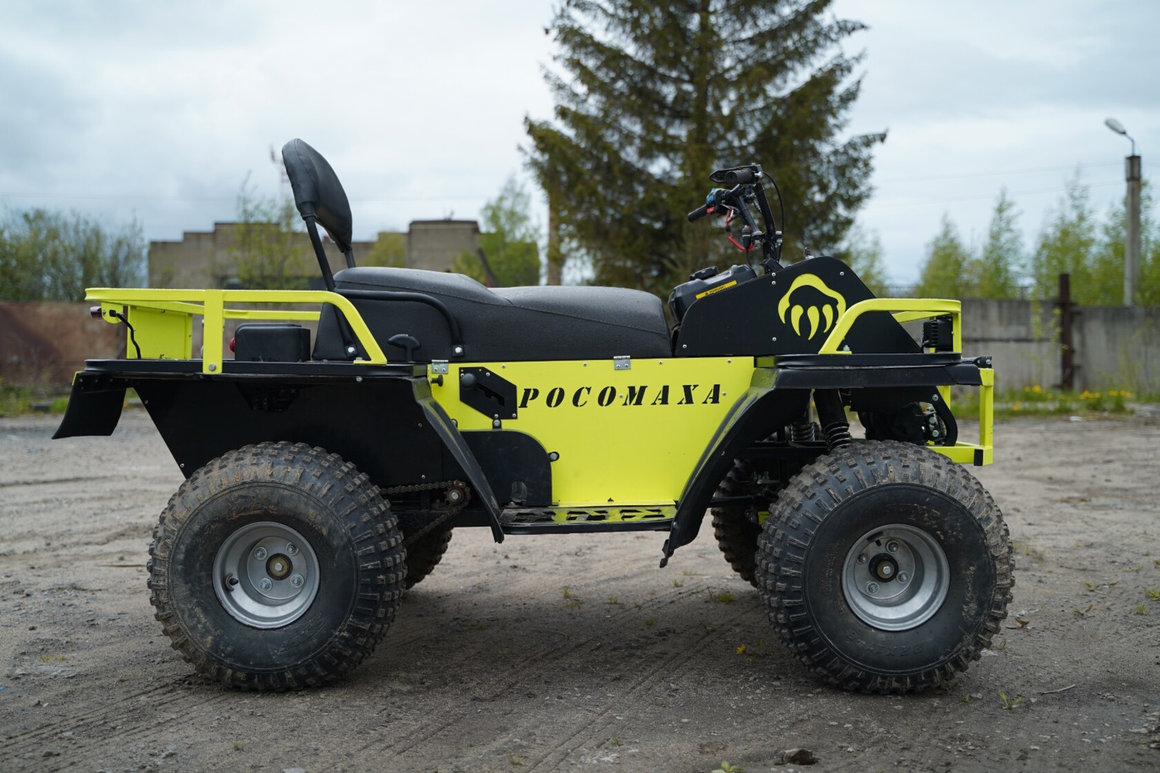 Квадроцикл Росомаха 500 Предлагаем вашему кит-комплект квадробукс «Росомаха 500»В концепции квадробукса конструктив и высокая проходимость квадроцикла сочетаются с доступностью и простотой мотобуксировщика.Для уверенной проходимости по трассам со сложным рельефом и пересеченной местности звезда привода нового квадробукса смещена вправо, что в сравнении с традиционным центральным расположением цепи позволяет Росомахе легче преодолевать бездорожье, а также продлевает срок службы самой звезды, снижая вероятность ударов о препятствия на дороге.ОписаниеПредлагаем вашему кит-комплект квадробукс «Росомаха 500» c двигателем объемом 459 см3. В концепции квадробукса конструктив и высокая проходимость квадроцикла сочетаются с доступностью и простотой мотобуксировщика.Особенности конструкции квадробукса "Росомаха 500":- Габаритные размеры: длина 2210 мм, ширина 1300 мм, высота 1240 мм. - Колеса 22*11-8- Бескамерные шины низкого давления- Клиренс 275 мм- Одноцилиндровый четырехтактный двигатель мощностью 15 л.с. (420 куб. см) или 20 л.с. (459 куб. см) с электростартером- Трансмиссия - вариатор и КПП- Передняя подвеска с мотоциклетными гидравлическими амортизаторами- Цепной привод на заднюю ось- Усиленная цепь с повышенным ресурсом- Гидравлические тормоза- Двухместное сиденье- 2 багажника сзади грузоподъемностью до 30 кг каждый- Светодиодные фары- Универсальное сцепное устройство- Перфорированные подножкиДля уверенной проходимости по трассам со сложным рельефом и пересеченной местности звезда привода нового квадробукса смещена вправо, что в сравнении с традиционным центральным расположением цепи позволяет Росомахе легче преодолевать бездорожье, а также продлевает срок службы самой звезды, снижая вероятность ударов о препятствия на дороге.Дополнительные опции:- лебедка- светодиодная балка- фаркоп автомобильного типаВсе комплектующие для квадробукса, за исключением двигателя, изготавливаются в России, что существенно упрощает ремонт и замену деталей. Росомаха 500 собирается полностью из новых комплектующих на одном предприятии, где процесс сборки находится под единым контролем. Все это позволило нам предоставить на квадробукс Росомаха 500 гарантию 1 год.