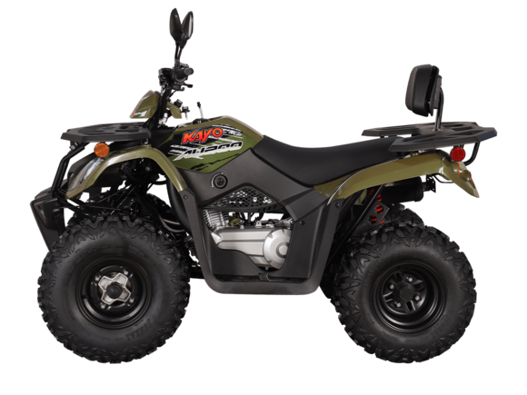 KAYO AU200 в модификации 2024 года - популярная и доступная модель квадрицикла, которая пользуется вниманием широкого круга любителей внедорожных приключений и активного отдыха. Небольшой утилитарный мотовездеход обладает незаурядными возможностями практического использования и рассчитан на людей разного возраста и опыта.В крепкой раме квадрицикла, проверенной годами и тысячами пользователей, установлен 4-тактный мотор с вертикальным расположением цилиндра. Рабочий объем двигателя в 176 кубических сантиметров позволяет развивать максимальную мощность в 13 лошадиных сил. Данный мотор оснащается балансирным валом, что способствует снижению вибраций и положительно сказывается на комфорте передвижения.У KAYO AU200 используется автоматическая трансмиссия на базе вариатора. Рычаг селектора передач имеет три положения: задний ход – нейтраль – вперед. На крышке вариатора установлен шноркель, и его воздухозаборное отверстие расположено довольно высоко. Это дает возможность преодолевать небольшие водные препятствия, не опасаясь попадания воды в трансмиссию.Все кнопки управления оборудованием собраны в один компактный пульт. Здесь находятся кнопки запуска и остановки двигателя, переключатели светового оборудования, кнопка звукового сигнала. Для удобства запуска двигателя рычаг подсоса также вынесен на руль. Как и любой другой утилитарный квадрицикл, KAYO AU200 комплектуется задним и передним багажниками, сделаными из стальных труб и облицованных пластиком.Внимание данный товар поставляется в разобранном виде, в коробке для самостоятельной сборки.