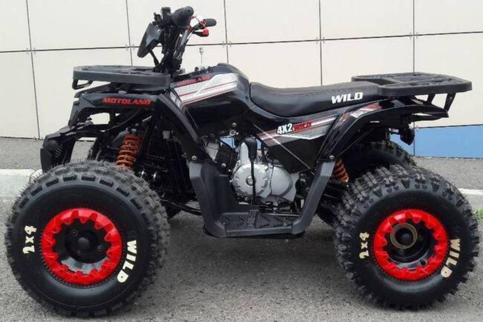 Квадроцикл Motoland ATV 125 Wild - улучшенный аналог, любимого всеми, квадроцикла ATV 125 Wild! Агрессивный и одновременно стильный дизайн нового квадроцикла без сомнения будет привлекать восхищенные и завистливые взгляды всех окружающих. Он способен развить скорость до 65 км/ч, что считается максимальной скоростью для данной модели. Предусмотрены багажники: передний и задний.Квадроцикл ATV 125Wild Motoland имеет уникальные амортизаторы, которые отличаются своей надежностью и обеспечивают удобную езду на представленном квадроцикле. Этот квадроцикл ориентирован исключительно на одного человека.