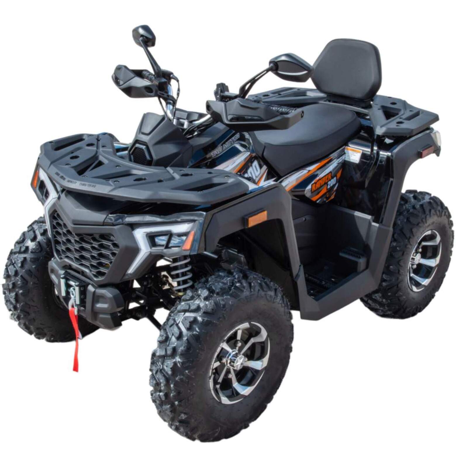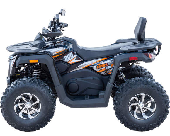 Данная модель оснащена ВЕРТИКАЛЬНЫМ двигателем, автоматической коробкой передач, увеличенными воздухозаборниками, электростартером. Предназначен для езды по бездорожью, имеет хорошую проходимость, прекрасно ведёт себя на песке, грунте и в грязи. Это одна из лучших моделей ATV по соотношению цены и качества. Подходит для новичков и любителей. Новые сбалансированные амортизаторы позволяют легко преодолевать ямы, ухабы и другие неровности. Задняя подвеска с новым, усиленным моно-амортизатором. Квадроцикл доступен в белом цвете с модернизированной линзовонной светодиодной оптикой, увеличенными ходовыми огнями и поворотниками отлично выглядит в своем новом агрессивном стиле. Дополнительная спинка пассажира, а так же USB разъем и прикуриватель. ATV RANGER 200 весит 160 кг, выдерживает нагрузку до 150 кг. Рама стальная, трубчатая, покрашена в цвет. Прочный облицовочный пластик не ломается при сгибании. Квадроцикл имеет оригинальные литые колесные диски, передние - 23х7 R10 и задние - 22х10 R10. Габариты в собранном виде (ДхШхВ): 1800х1000х1280.