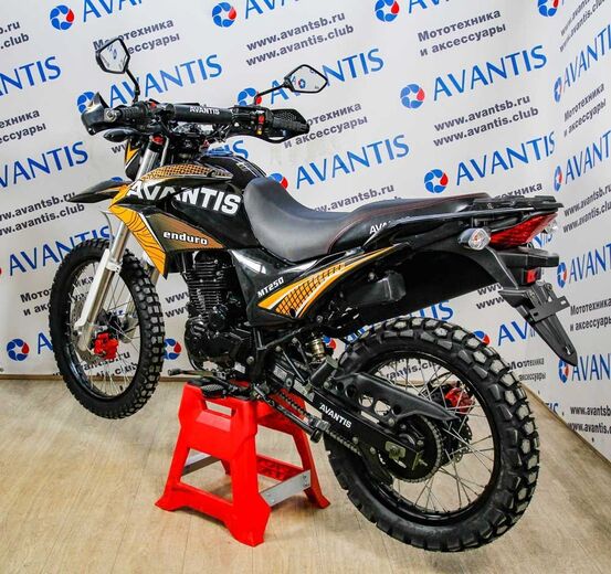 МОТОЦИКЛ AVANTIS MT250 С ПТС — модель 2020 года. Этот мотоцикл предназначен для экстремального катания по пересеченной местности, легкому бездорожью, а также дорогам общего пользования. Он скоростной, качественный, выносливый, идеально подходит байкерам с 18 лет. Широкое мягкое сиденье обеспечивает удобную классическую посадку — даже после нескольких часов за рулем пилот не испытывает ни малейшего дискомфорта и готов двигаться дальше.Байк оснащен современным двигателем 250сс воздушного охлаждения Zongshen. Мощность — 21 л.с., коробка передач шестиступенчатая. Благодаря шинам для туристического эндуро и вилке перевернутого типа мотоциклист одинаково хорошо передвигается по бездорожью и по твердому покрытию. Соединение ведомой звезды к ступице колеса выполнено через демпферы, что добавляет плавности при трогании, переключении передач и сбросе газа.В стандартной комплектации байка предусмотрена защита для рук, а также армированные тормозные шланги, дисковые тормоза, двухпоршневые суппорты сзади и спереди. Также модель имеет место для крепления багажного кофра — чтобы райдер мог взять в дорогу самое необходимое.МОТОЦИКЛ AVANTIS MT250 С ПТС не только маневренный, но и безопасный. Его тормозные диски диаметром 26,5 см спереди и 21,5 см сзади обеспечивают мгновенное, четкое торможение. Алюминиевые обода колес обладают большим запасом прочности и продолжительным сроком службы.