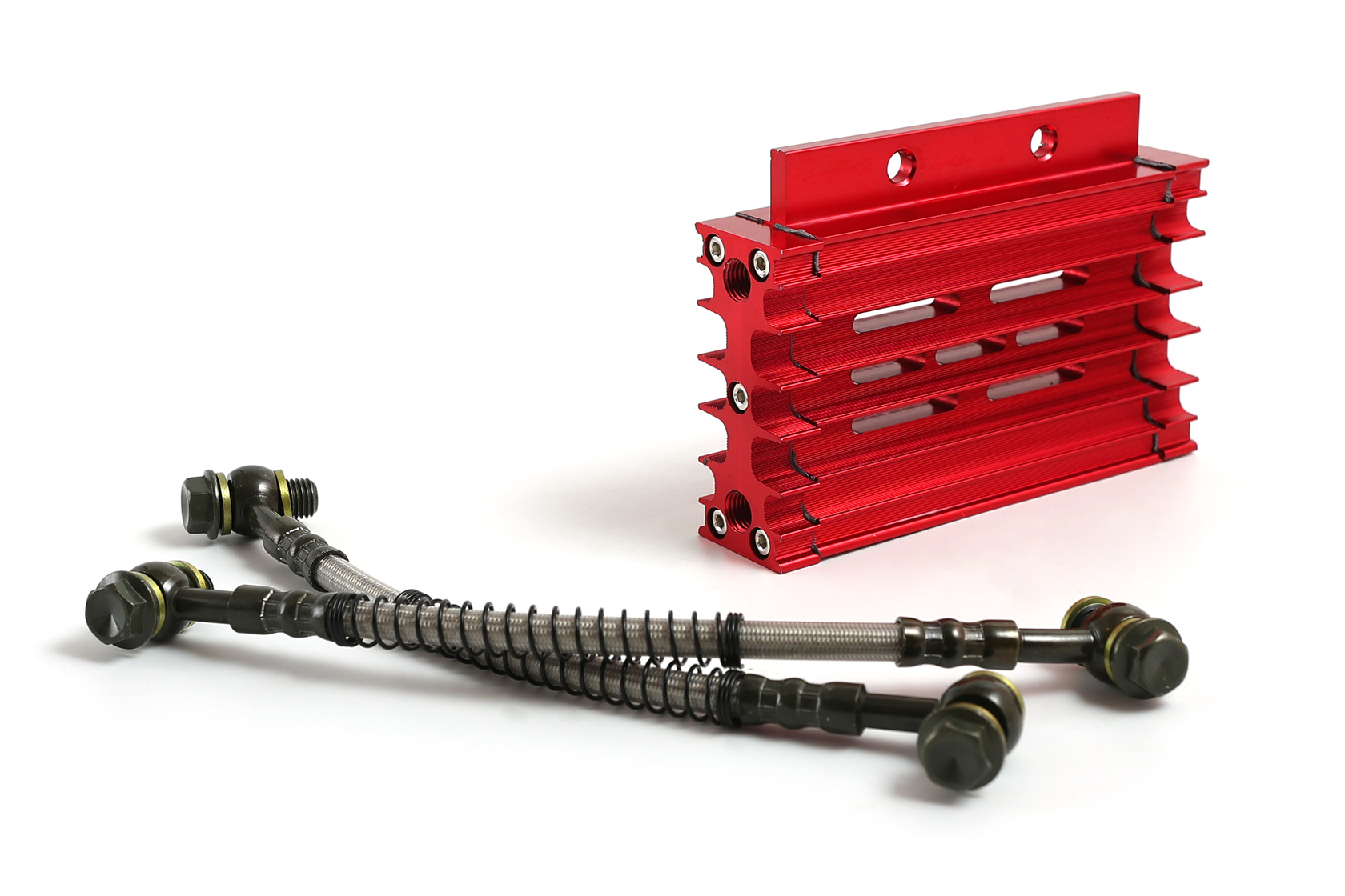 Эффективный радиатор масляного охлаждения с корпусом из алюминия, выполненный по технологии CNC, ярко-красного цвета. Предназначен для установки на 90% питбайков и мопедов с объёмом двигателя от 125 до 190 см³. Обеспечивает стабильное охлаждение масла, снижая риск перегрева двигателя и увеличивая его срок службы даже при интенсивной эксплуатации.