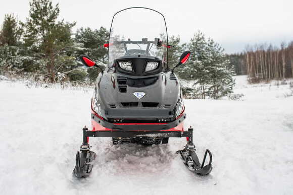 Снегоход из лимитированной линейки техники «Бурлак» в стильном черно-красном цвете и с обновленным дизайном капота. Мощный двигатель 24 л.с. обеспечивает стабильную работу и развивает скорость до 40 км/час. На приборной панели расположены тахометр, спидометр и счетчик моточасов. Багажник оснащен петлями для крепежной шнуровки. Улучшенные подножки имеют антискользящее покрытие. Ручки руля и курок газа с подогревом для комфорта использования в сильные морозы. Модель оснащена устройством для зарядки гаджетов, необходимым во время долгого путешествия. АКБ в комплект поставки не входит.