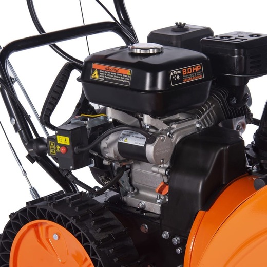 Снегоуборочная машина Kettama 80S Superior представляет собой «младшую» модель линейки Superior. Однако она также обладает всеми её основными преимуществами. Снегоуборщики линейки Superior, выпускаемые компанией Kettama, представляет собой класс полупрофессиональной техники. Основными отличиями от класса бытовой техники являются повышенная производительность и рабочая ресурсность.На Kettama 80S установлены безвоздушные шины SnowLink с технологией Runflat. Эти шины с глубоким протектором исключают пробуксовку агрегата на обледенелом участке. Увеличенное сцепление даёт возможность достичь показателей производительности практически равных гусеничному шасси. При этом, более низкий общий вес снегоуборщика позволяет достигать на этой модели показателей производительности до 5 т/ч со снегом плотностью до 500 кг/м3 (сброшенный с крыш). На свежевыпавшем влажном снегу плотностью до 200-230 кг/м3 этот снегоуборщик способен достигать производительности до 15 т/ч. Шины позволяют достигать высокого сцепления и повышенной производительности даже во время поворотов.Возможность эффективно перерабатывать снег разных типов сложности связана с конструкторским решением сочетания высокой мощности (8,5 л. с.), небольшой ширины уборки (660 мм) и усиленным сцеплением 14-дюймовых безвоздушных шин Runflat. Небольшая ширина ковша даёт возможность эксплуатировать технику на любом приусадебном участке с узкими дорожками. Повышенная высота ковша даёт возможность применения этой техники при работе с более высоким снегом. Однако это же создаёт определённые ограничения в работе с лежалым снегом с элементами сухого фирна. Дефлектор из усиленного металла позволяет менять направление выброса снега на 190 градусов при помощи рукоятки на корпусе машины. Стальной шнек с добавлением хромомолибденового сплава позволяет эффективно справляться даже со слежавшимся снегом.Скорость уборки: 6 передач вперёд и 2 назад, что позволяет выбрать оптимальный режим работы в зависимости от сложности задачи и типа снега. Металлическая рама с добавлением холодостойкого нихрома обеспечивает долговечность конструкции и возможность работать даже при экстремально низких температурах. Снегоуборщики Kettama. Наша техника станет для вас отличным подспорьем в уборке льда. Надёжный и стабильный двигатель с длительной гарантией, обеспечиваемой опытными специалистами, всегда вас выручит в момент нужды и избавит от лишней мороки. При этом нашим инженерам удалось добиться достойного соотношения качества к цене. Это позволит облегчить жизнь Вам и Вашей семье, не получив серьёзного урона по кошельку.Снегоуборщики Kettama являются одними из самых передовых и технологичных на российском рынке. Несмотря на свой привлекательный внешний вид, дизайн предельно прост и функционален, что повышает надёжность техники, исключая случайные поломки и снижая частоту обслуживания даже при регулярном использовании. Специально разработанные шнеки-ледорубы с агрессивным строением лезвий позволяет избавляться от любого, даже замёрзшего снега, и даже льда. Благодаря им Вы просто не будете знать, что есть непреодолимые препятствия. Специально разработанная система направляющих механизмов позволяют регулировать наклон и положение ковша, давая возможность адаптировать механизм под любые ситуации. Проверенные временем и сотнями ты