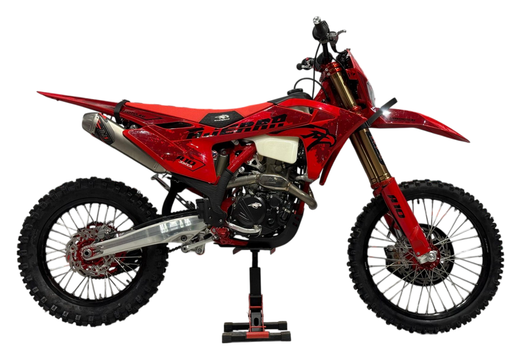 Мотоцикл AJERRA JOKER A10 YBS 300 — это современный эндуро нового поколения, созданный для тех, кто ценит сочетание мощности, управляемости и надёжности. Его сердце — двигатель Loncin 176FM YBS FM с водяным охлаждением, обеспечивающий стабильную работу даже при высоких нагрузках. Благодаря точной настройке и системе зажигания CDI мотор демонстрирует уверенную тягу и отличную отзывчивость на газ. Конструкция мотоцикла выполнена по образцу флагманских моделей KTM. Рама К10 от завода AJ1 — это точная копия KTM 2024 года, обеспечивающая прочность и устойчивость при езде по бездорожью. Пластик выполнен в стиле GAS-GAS 2024, придавая модели современный и спортивный облик. Подвеска — одно из сильных мест JOKER A10. Спереди установлена вилка HTW SCC длиной 930 мм с одним картриджем, а сзади — амортизатор HTW 2450, обеспечивающий отличную отзывчивость и стабильность на неровностях. Фрезерованные траверсы AJ1 2024, алюминиевая прогрессия и маятник делают конструкцию лёгкой, но прочной — идеальной для активного эндуро. Мотоцикл оснащён карбюратором Nibbi Racing PWK 34 Black, который обеспечивает точную подачу топлива и стабильную работу на любых оборотах. Тормозная система AJ1 с вентилируемыми дисками спереди и сзади гарантирует надёжное торможение, а усиленные обода 7116 UNISON и фрезерованные ступицы повышают устойчивость и долговечность конструкции. Из деталей — всё на уровне профессиональной техники: руль AL7075, алюминиевая звезда AL7075 51, цепь KMC 520 Pro, подножки AJ1 2025 (копия S3) и современная выхлопная система AJ1 2025. Каждая деталь продумана для лёгкости, прочности и надёжности. Электрооборудование включает в себя яркий свет 2 EYE LED Generation 4 (50W), литиевый аккумулятор Skyrich, цифровую приборную панель (копия KTM 2024), а также защиту мотора и рамы. Есть счётчик моточасов, заглушки руля, стропы и антискользящее сиденье AntiSkid — всё, что нужно для полного контроля над мотоциклом. С высотой по седлу 94 см модель подойдёт для опытных райдеров, которые ищут технику с гоночным духом и максимальной управляемостью. AJERRA JOKER A10 YBS 300 — это мощь, стиль и надёжность, созданные для настоящих энтузиастов эндуро. Он дарит чувство свободы, уверенности и азарта в каждом километре.