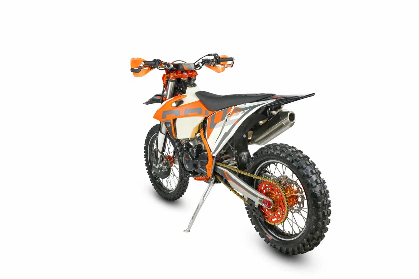 КомплектацияЭлектронная приборная панель, противоскользящее сиденье, защита рамы от протирания ботинками, подножки «AJ1» (алюминий 6063 с шипами), подножка боковая «AJ1» (алюминий 7075-Т6), невозгораемый воздушный фильтр «AJ1» – Twin Air с увеличенной площадью, ведомая звезда «AJ1» (520, алюминий 7075-Т6), защита рук, грипсы OTOM/Lock-On, передние и задние буксаторы «AJ1», откидные алюминиевые рычаги 270, алюминиевая лапка КПП, пульт света КТМ, LED фара 5 линз, моточасы, фрезерованная траверса X trigДвигательМодель оснащена 1-цилиндровым 4-х тактным двигателем ZONGSHEN ZS174MN-5A с водяным охлаждением и балансировочным валом объёмом 279,6 см3, который выдаёт 27 л.с.ПодвескаПередняя вилка "MNT" перевернутого типа T7 48- 910mm с регулировкой на сжатия и отбой. Моноамортизатор "MNT" также с регулировками. Система прогрессии, обеспечивает равномерную, мягкую работу и увеличивает длину рабочего хода подвески. Также ось крепления маятника совпадает с осью крепления ножки. Это существенно улучшает развесовку мотоцикла.КолесаСпереди и сзади установлены антибуксаторы бренда "AJ1", которые притягивают покрышку к ободу, позволяя ездить по бездорожью при низком давлении в камерах, не давая покрышке проворачиваться во время езды. Размер передней покрышки: 80/100 R21. Размер задней покрышки: 120/90-R18. Модель комплектуется "жирной" резиной "KENDA". Все эти характеристики позволяют мотоциклу отлично себя чувствовать в песке и грязи.Тормозная системаПолностью гидравлическая с армированными шлангами. Спереди и сзади установлен двухпоршневой суппорт. Диаметр дисков перед/зад, мм: 260/220. Данная конфигурация тормозных механизмов, позволяет быстро и безопасно оттормаживаться даже в самых непростых условиях.Сухой вес мотоцикла 117кг