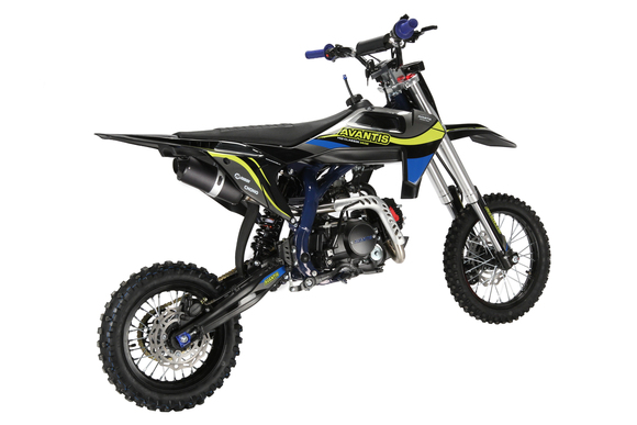 Питбайк Avantis H12-E Classic — это надежный выбор для любителей активного отдыха и начинающих гонщиков. Он оснащен 125-кубовым двигателем YX120 мощностью 10 л.с., который работает на топливе АИ-92. Запуск двигателя возможен как с электростартера, так и с кикстартера, что добавляет удобства в эксплуатации.Гидравлические дисковые тормоза с армированными шлангами на обоих колесах обеспечивают уверенное торможение.Комплектация Avantis H12-E Classic включает элементы, способствующие повышенной износостойкости и комфорту, такие как обновленное сидение, короткоходная ручка газа и защита двигателя.Пластиковый топливный бак (6.5 л) и легкий вес делают управление питбайком более маневренным и удобным.